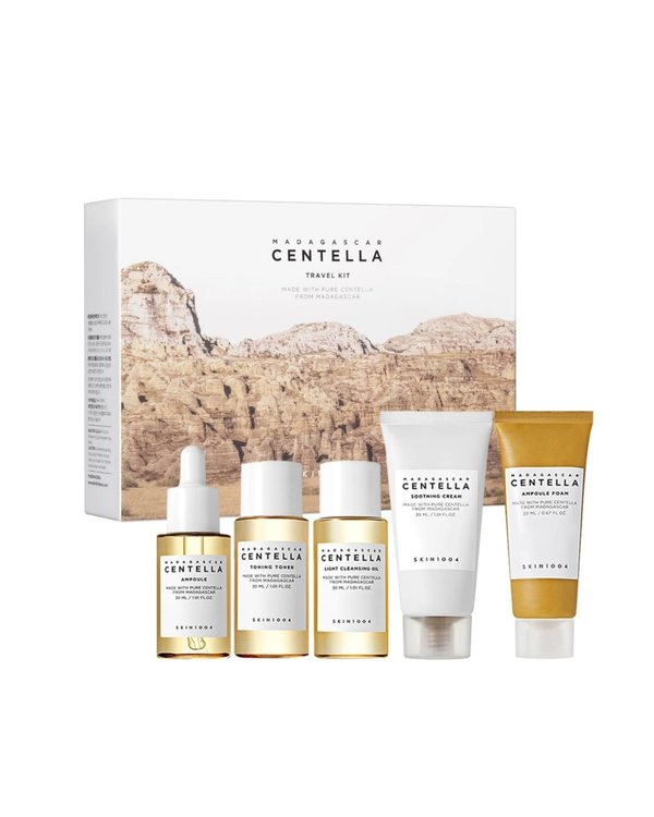 Centella Madagascar Kit → incluye limpieza doble, tónico, ampoule y crema para calmar rojeces, hidratar y fortalecer la barrera desde el primer paso.